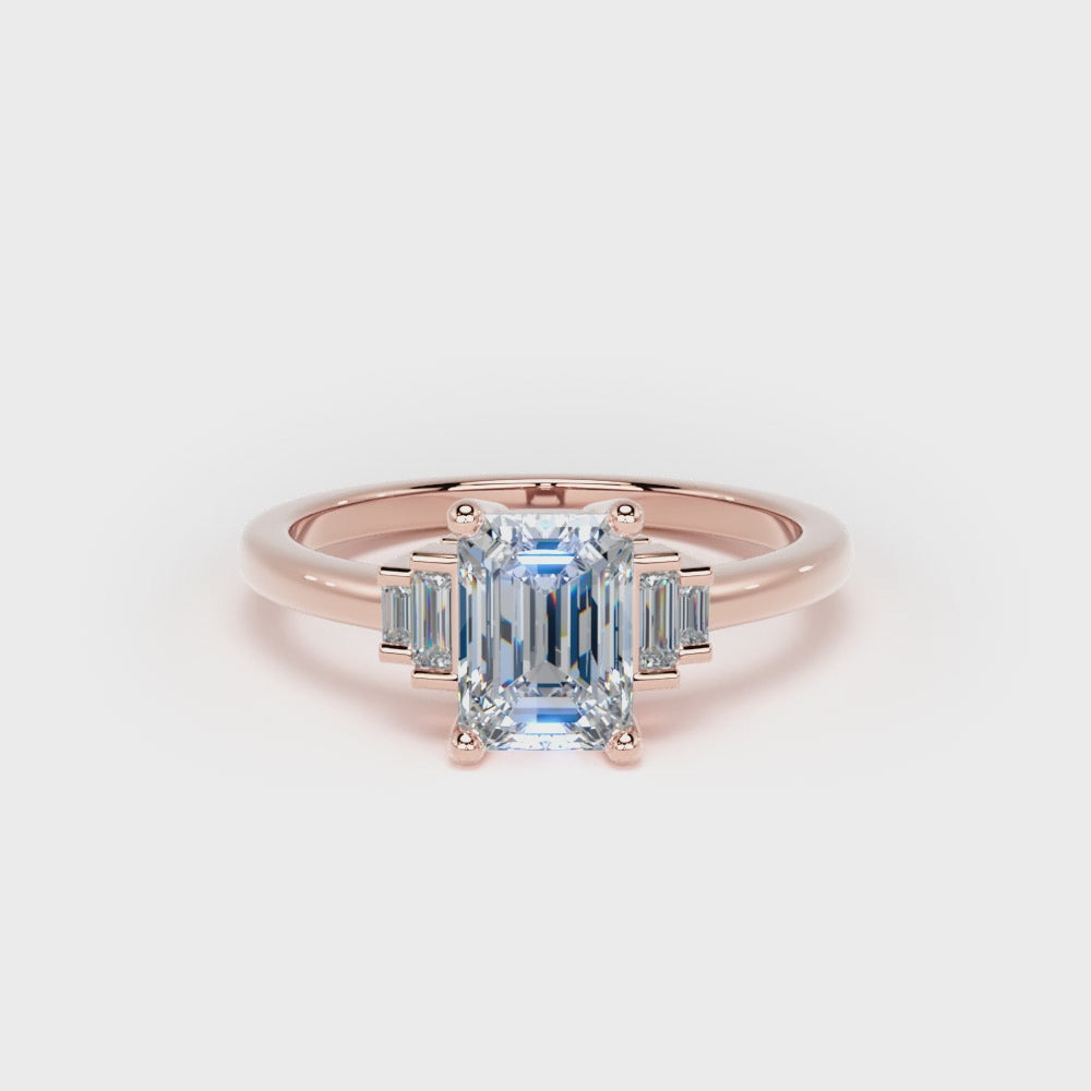 Rose Emerald Cut Engagement Ring in 18ct Rose Gold