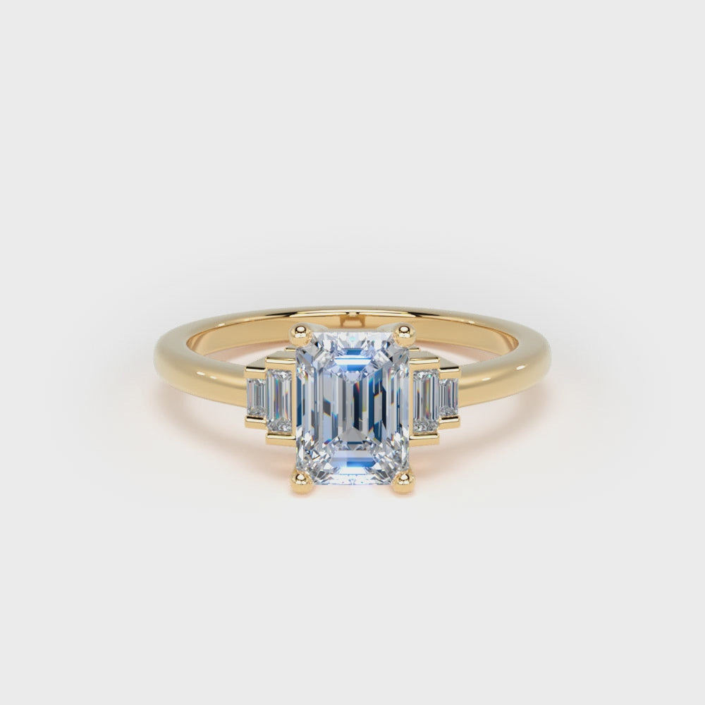 Rose Emerald Cut Engagement Ring in 18ct Yellow Gold